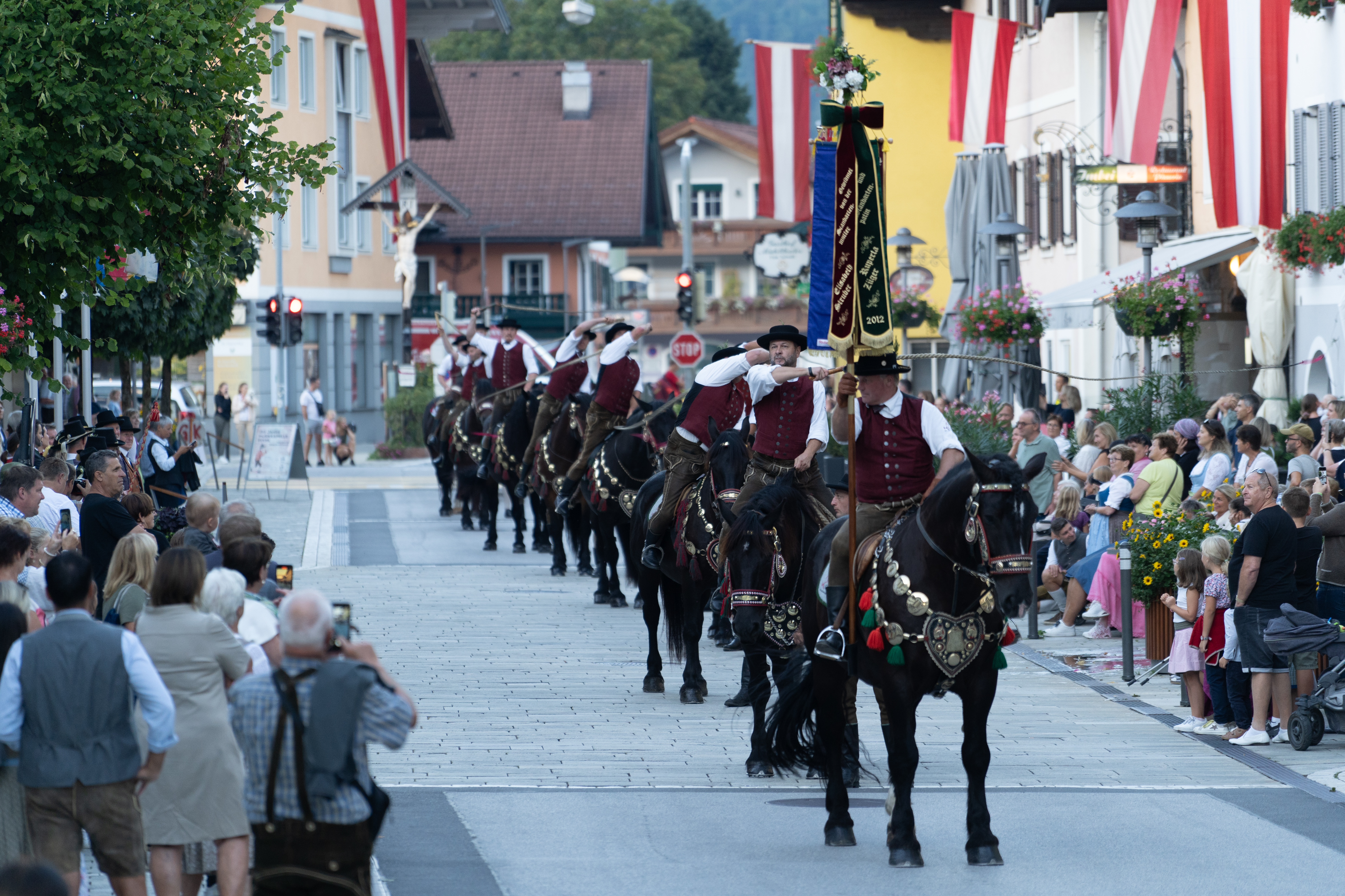 Mit den prachtvoll geschmückten Noriker Pferden und der Vereinstracht welche sich an
