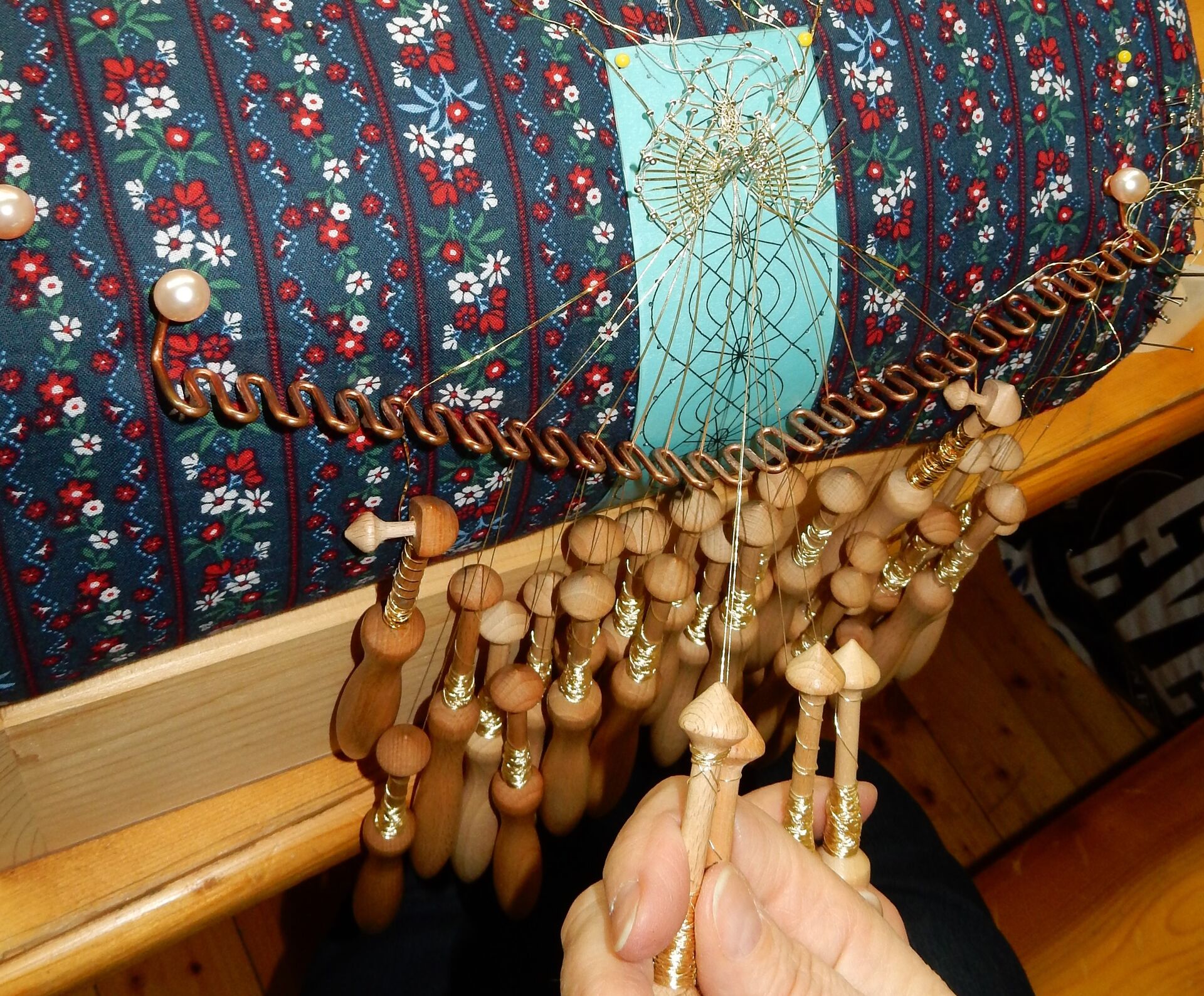 Die Herstellung der Handklöppelspitze beruht auf einem systematischen Wechsel von Verdrehen – Verkreuzen – Verknüpfen – Verschlingen der Fäden im Mehrfachsystem. Grundlage für die